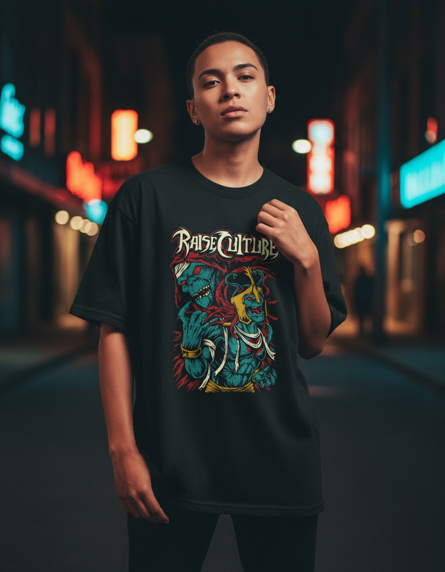 Unleash bold energy with our Raise Culture Mumm-Ra tee, inspired by powerful mythic vibes and underground streetwear culture. Made from 100% cotton with 240 GSM heavyweight fabric, this unisex oversized fit delivers breathable comfort and lasting durability. Finished with vibrant DTF prints, extra length, and dropped sleeves, it’s the perfect tee for those who embody strength, style, and attitude. More than a t-shirt—it’s raw culture redefined.