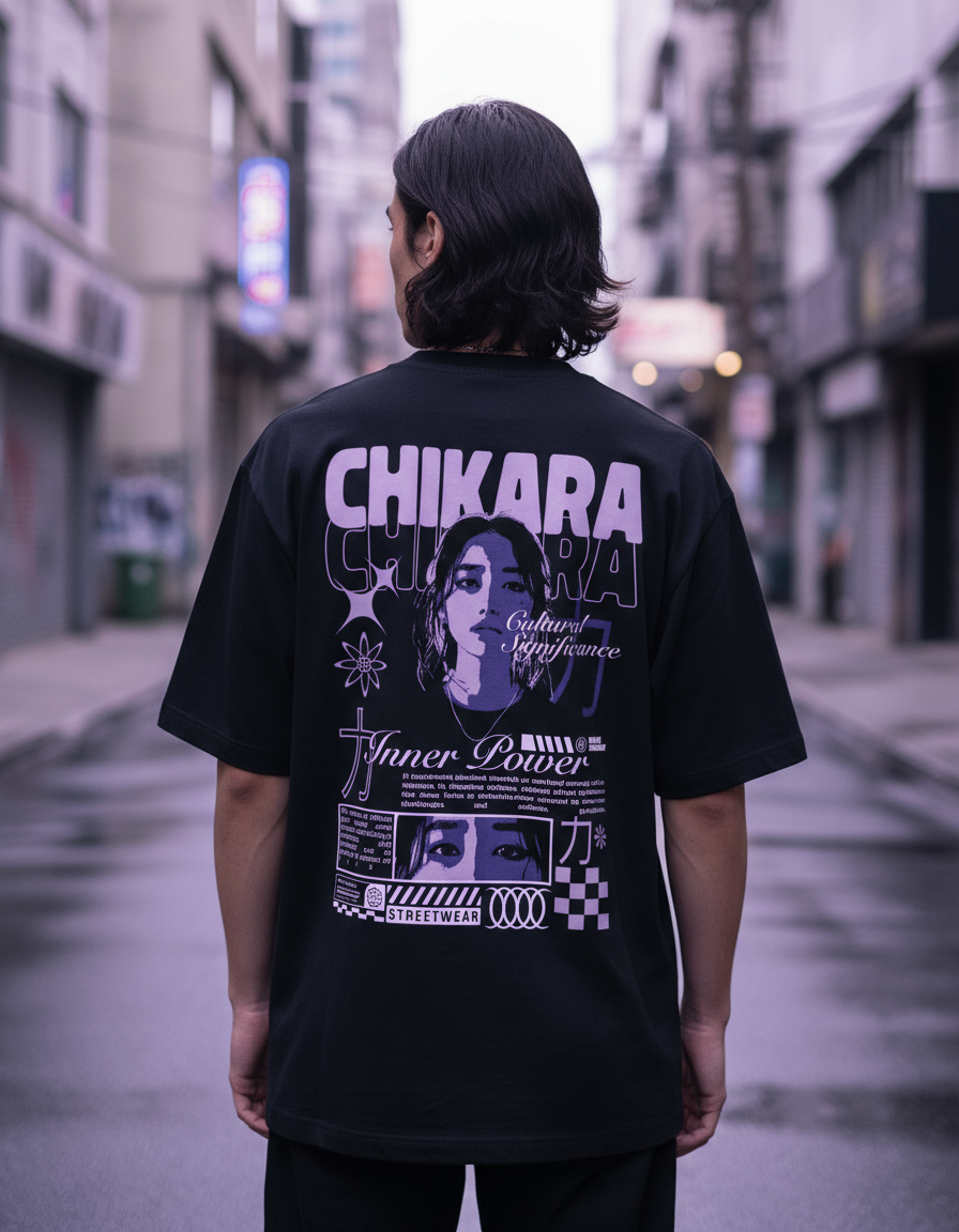 Channel true strength with our Chikara tee, inspired by the Japanese word for “power.” Designed with DTG (Direct-to-Garment) printing, it delivers vibrant, breathable artwork that won’t fade or peel. Made from 100% cotton with 240 GSM heavyweight fabric, this unisex oversized fit offers comfort, durability, and style. With extra length and dropped sleeves, it’s the perfect tee for streetwear with meaning.