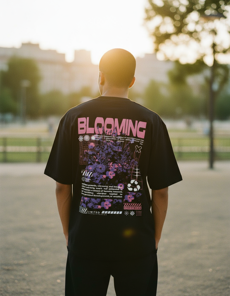 Fresh and artistic, our Blooming tee brings floral-inspired artwork to life with DTG (Direct-to-Garment) printing, ensuring soft, vibrant colors that never crack or peel. Made from 100% cotton with 240 GSM heavyweight fabric, this unisex oversized fit offers breathable comfort and long-lasting quality. With extra length and dropped sleeves, it’s the perfect blend of elegance and streetwear edge. More than a t-shirt—it’s style in full bloom.