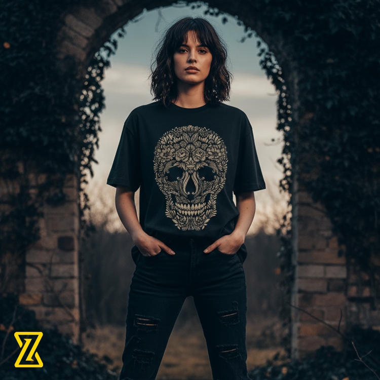 Blend edgy and artistic style with our Floral Skull tee, featuring a striking skull adorned with intricate floral designs. Crafted from 100% cotton with 240 GSM heavyweight fabric, this unisex oversized fit ensures comfort and durability. Vibrant DTF prints, extra length, and dropped sleeves make it the perfect streetwear statement for a bold, confident look. More than a t-shirt—it’s attitude with art.